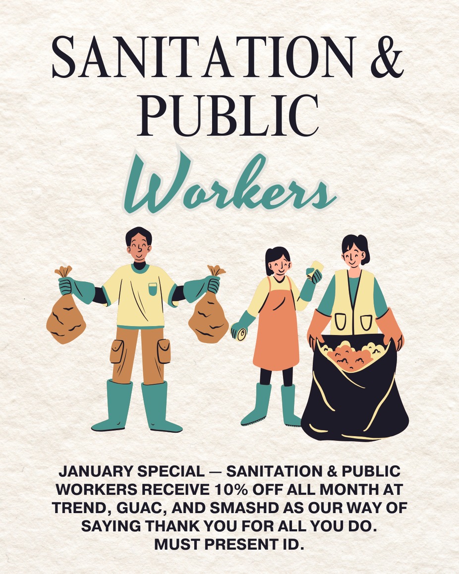 Sanitation & Public workers, show your work ID and receive 10% off your purchase all month long.